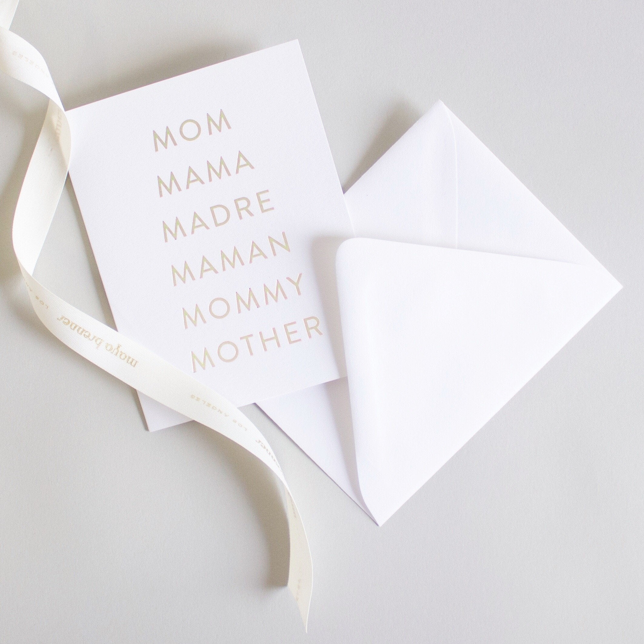 • Message: Mom, Mama, Madre, Maman, Mommy, Mother (blank inside)