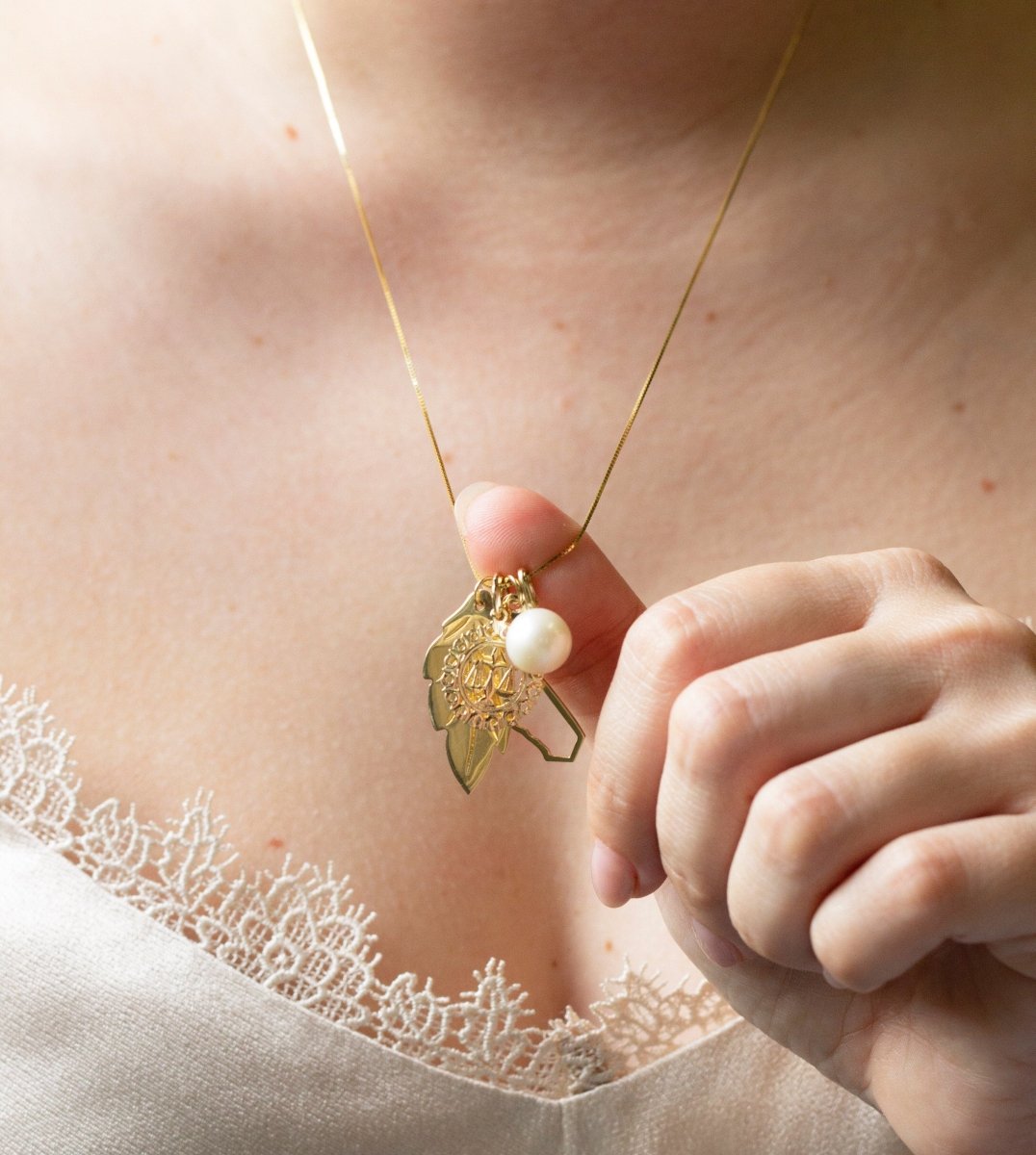 Our Perla Necklace is a 10mm white pearl strung on a 22" 14K yellow gold bead chain.