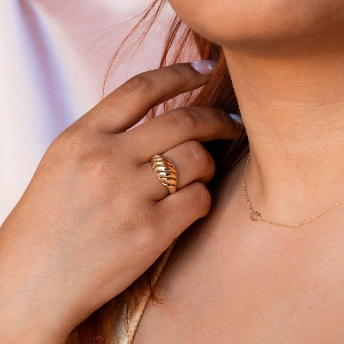 Paris is always a good idea. Take the romantic route with the Etched Paris Ring. A beautiful and versatile ring with curved crescent shape detail.