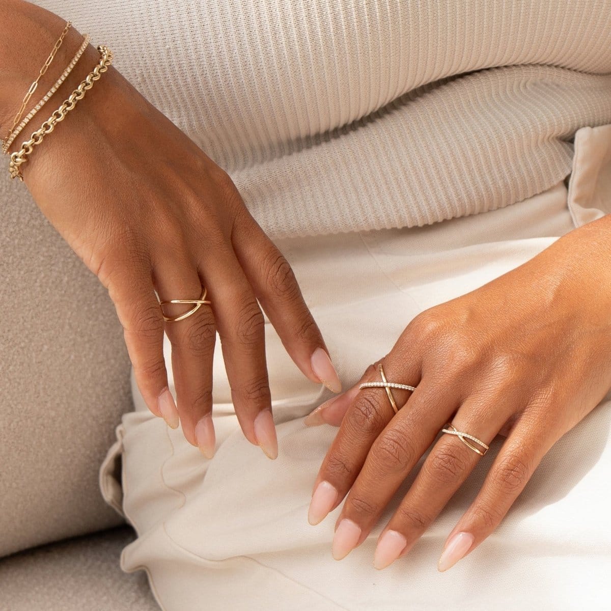 The Criss-Cross Diamond Duo Ring is your new go-to for that perfect touch of sparkle! This dainty beauty, crafted in 14K yellow gold, shines with a delicate criss-cross design and a sprinkle of 1/8 CTW natural diamonds. Get ready to turn heads with this shimmering standout!