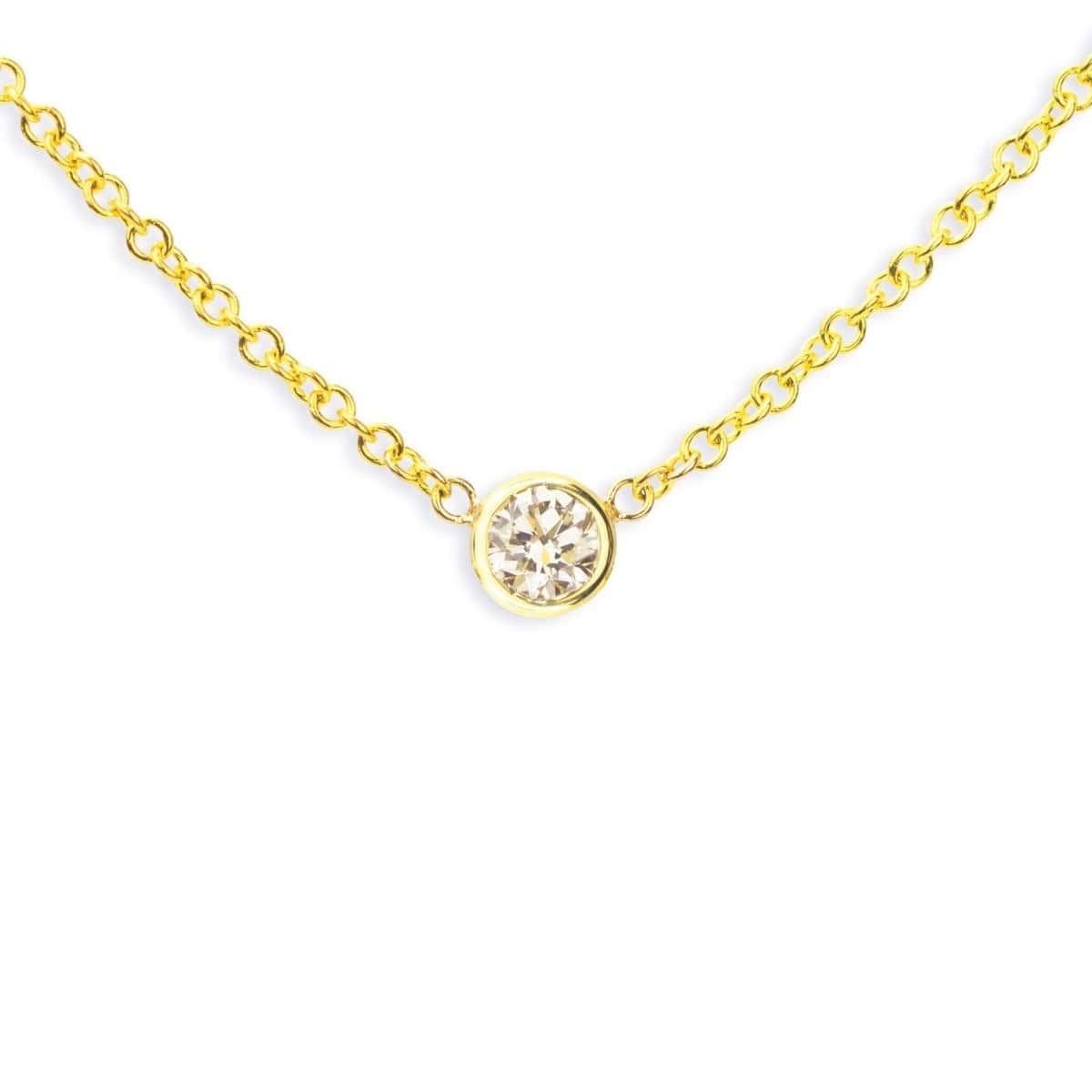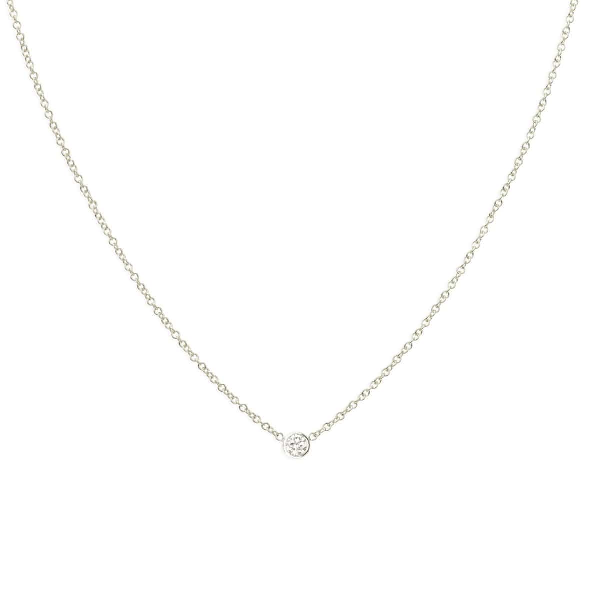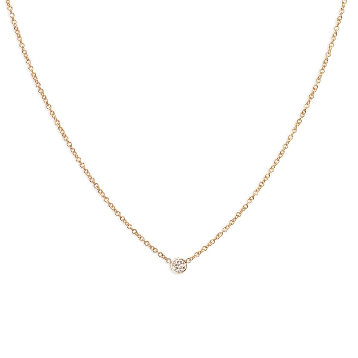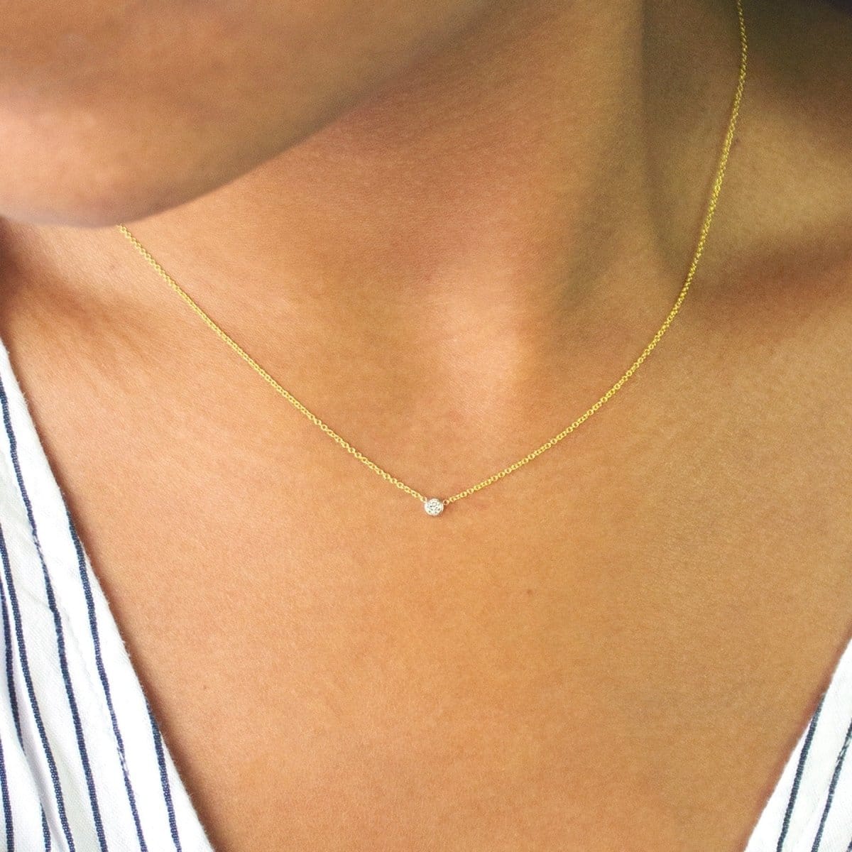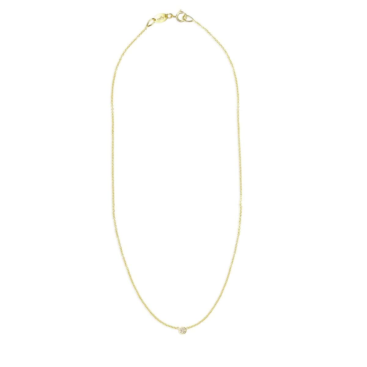 If you've been looking for the perfect layering necklace look no further. A delicate 14k gold cable chain with a centered sparkling white 2.5mm diamond set in a 3mm bezel.