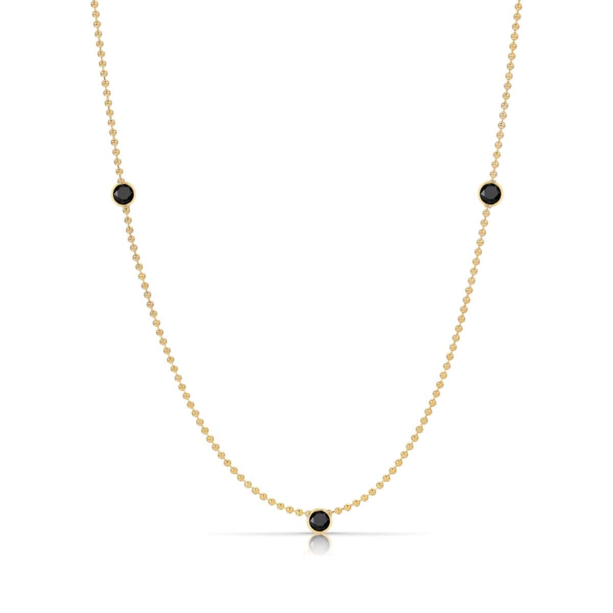 A Triple Birthstone Layering Necklace - Yellow Gold in Onyx - August on a white background.