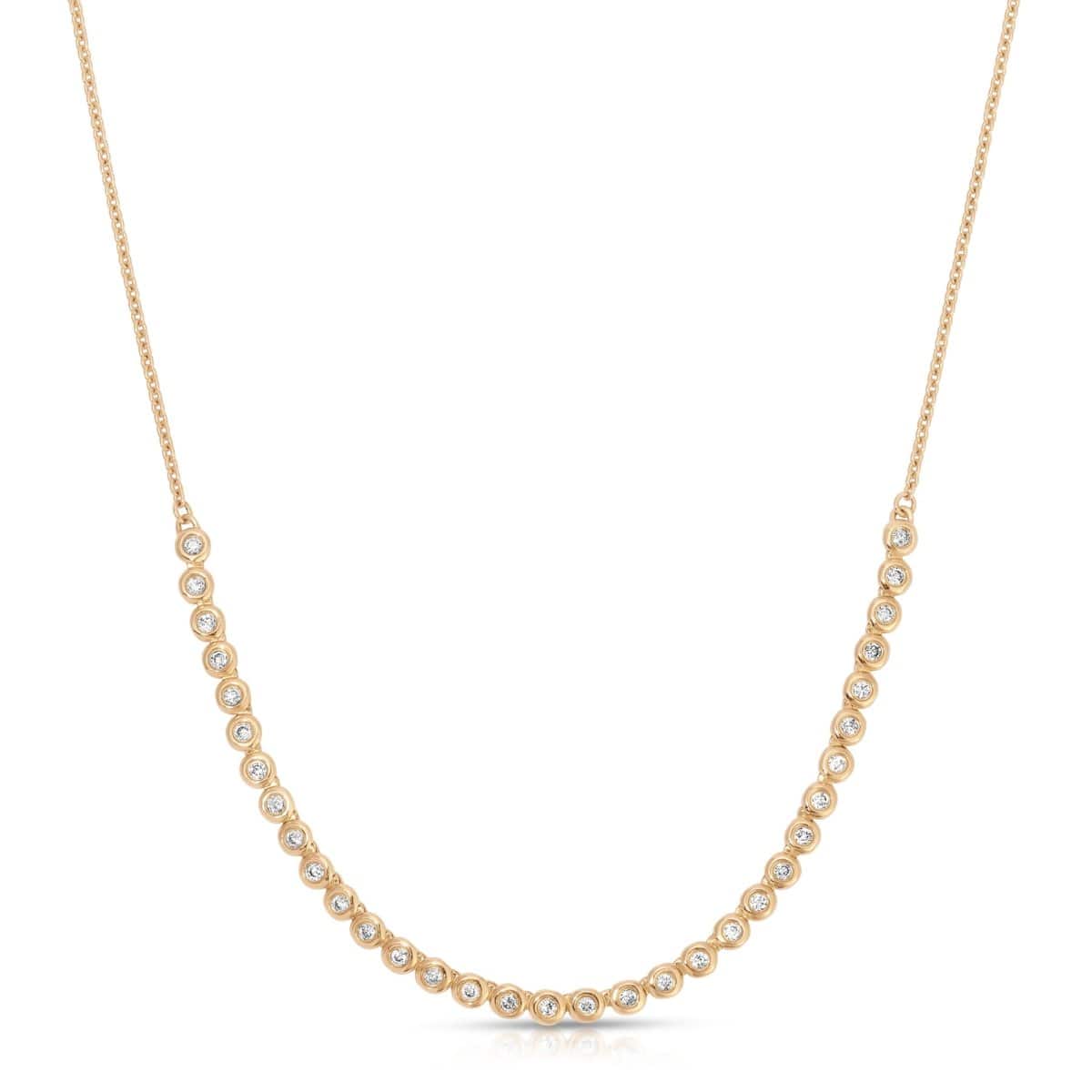 This piece combines the timeless beauty of bezel set diamonds with the durability of 14K yellow gold, making it perfect for everyday wear or special occasions. The lobster clasp ensures the necklace stays in place, and the extender chain gives you flexibility in length from 14”-17”.