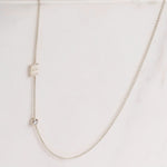 The Original Asymmetrical Letter Necklace has been a brand favorite since its launch in 2008. It has been spotted on Meghan Markle, Mila Kunis (among others) and now you! This necklace is handmade in London from high quality 14k gold. Each 2.5 mm diamond is set in a 3mm gold bezel and soldered onto our signature delicate chain. It's designed to sit on the collar bone. Diamonds are .06 ct.