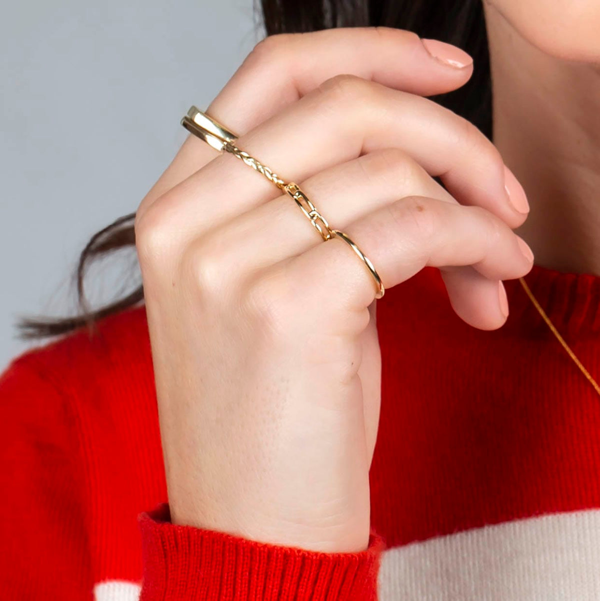 Adding a little texture to your stack? This braided cut solid 14k gold ring is small, but mighty. Available in rose, yellow and white gold, it’s designed to be worn on its own or stacked with other rings.