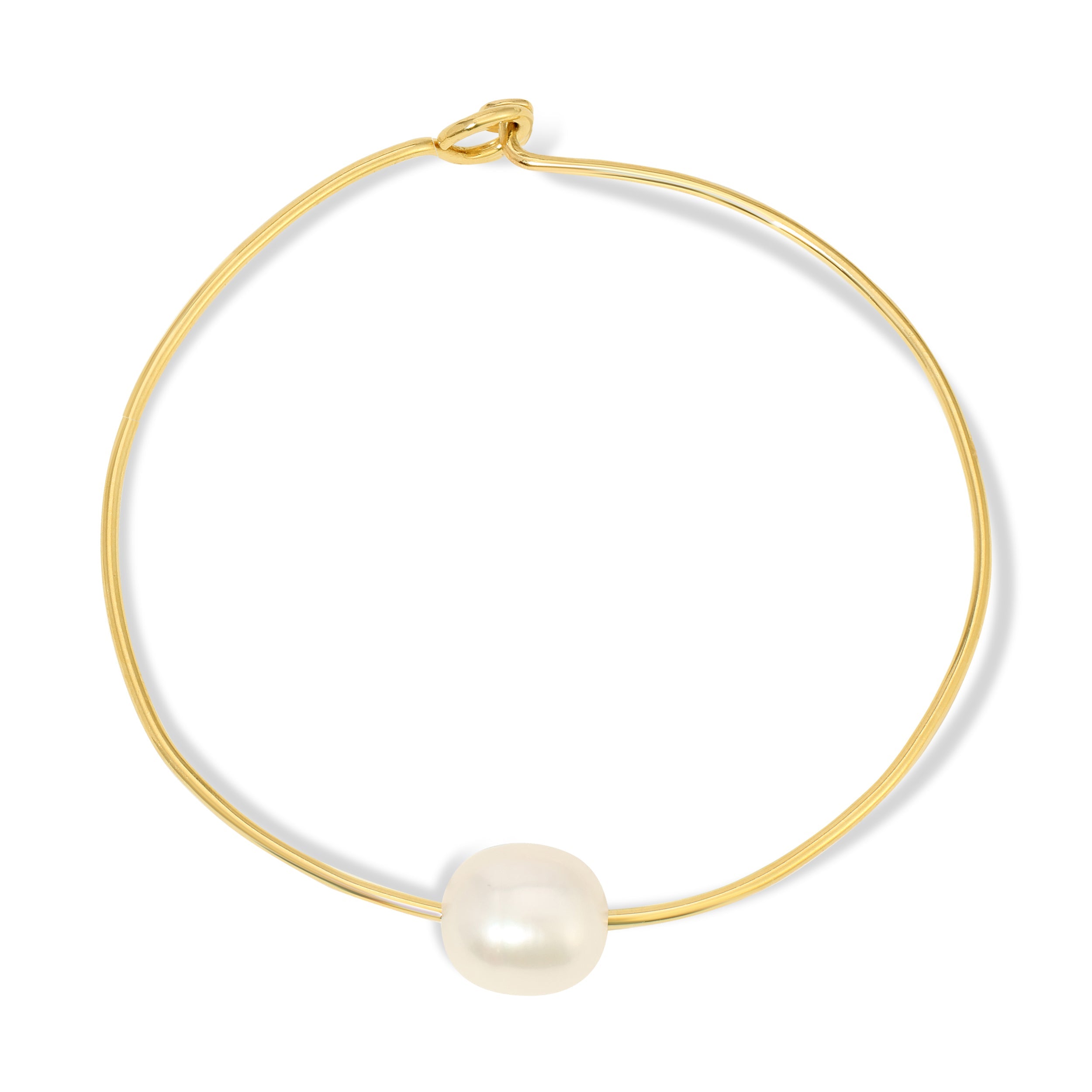 The kind of piece that makes you look twice. This bangle features a radiant white pearl set on a sleek 14k gold bangle. The pearl’s organic shape makes each bracelet truly one of a kind—perfectly imperfect with a hint of edge.