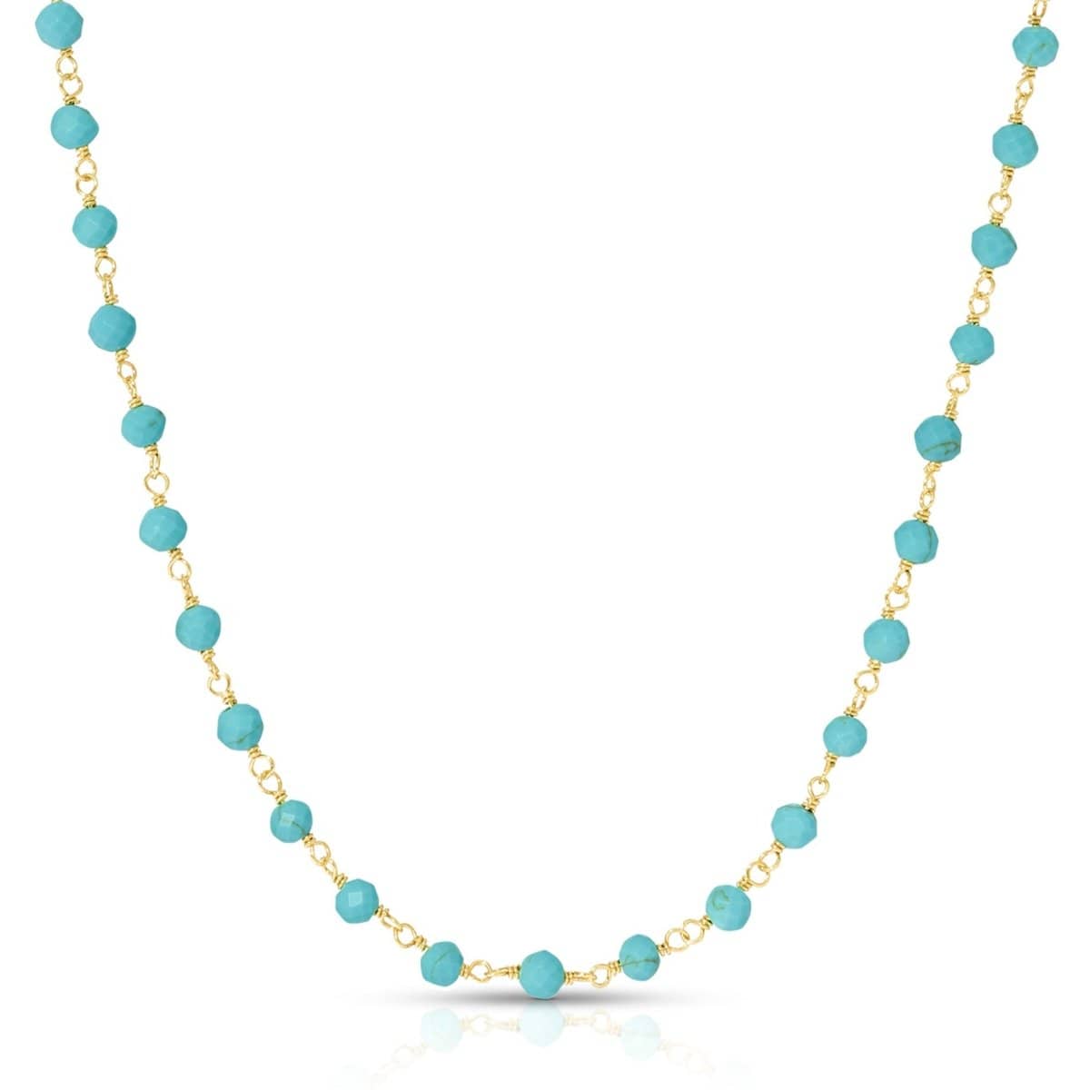 Each necklace has 3mm natural faceted turquoise beads hand wrapped with 10k yellow gold wire. Available in lengths up to 30”.